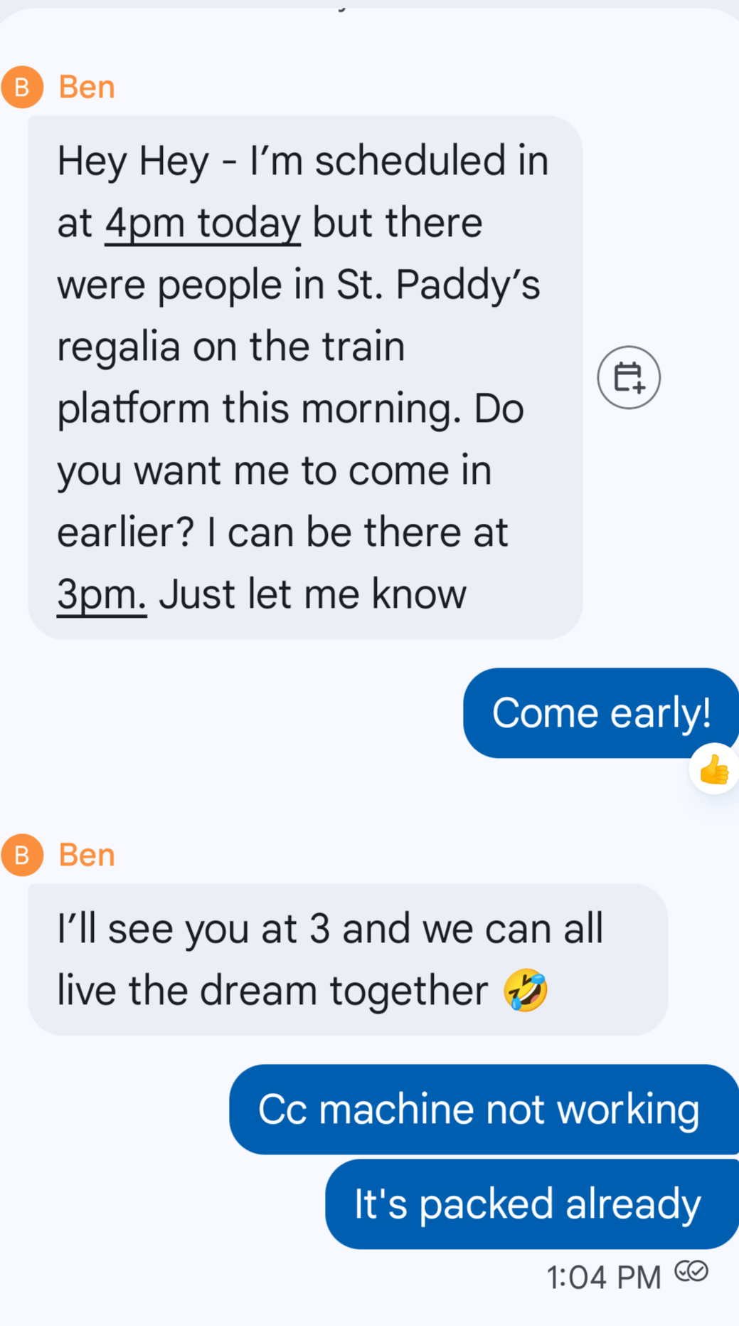 It was getting busier by the minute, so we immediately set him to work on the credit card situation. After several attempts, Ben confirmed what we suspected—the terminal was terminal—and jumped back into the serving fray.