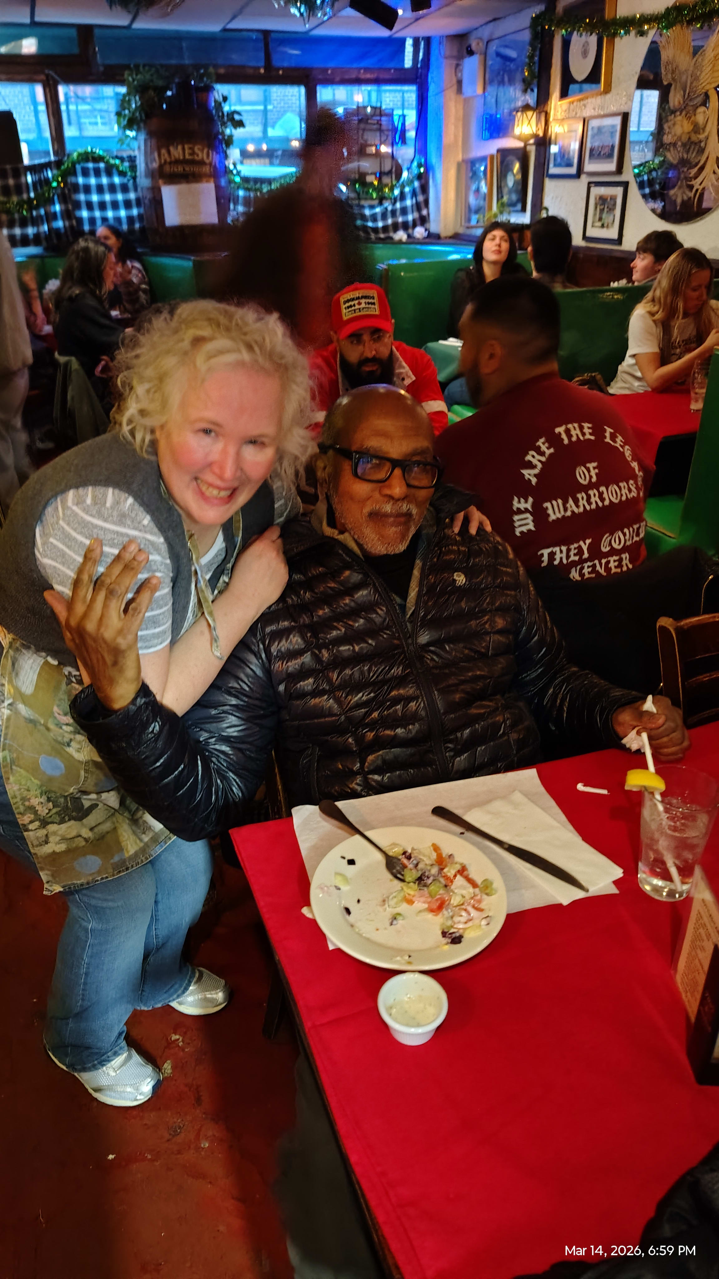 People kept streaming in. We were all moving fast—too fast. The new porter raced down to the basement to change another keg of Guinness, hit his head and came back upstairs bleeding. That caused a bit of panic in the kitchen, but Chef Mariano (always good in a crisis), staunched the blood and determined he didn’t need stitches. And indeed, he was fine, and went back to work. (But Mary consulted Chat GPT once more, just to be on the safe side.)